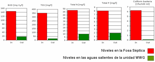 - 90-95% de reducción de la DBO (Demanda Biológica de Oxígeno)